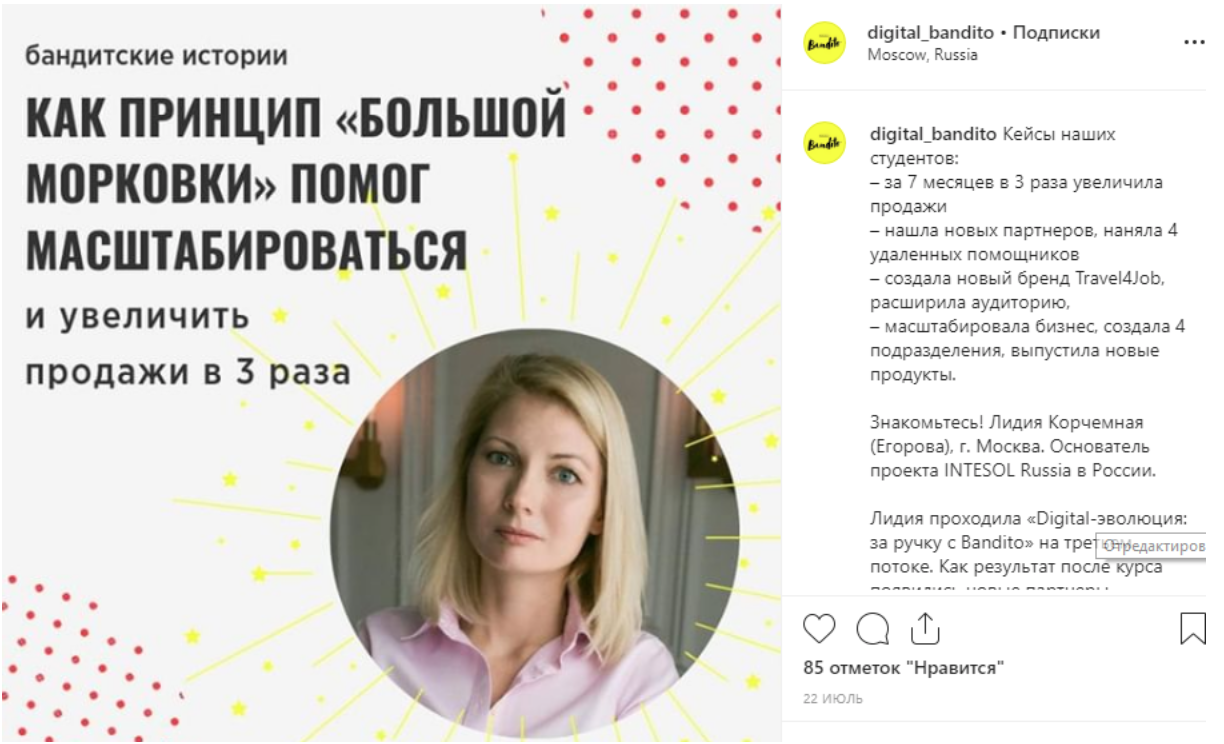 Если вы подписаны на наши аккаунты в Инстаграме и Facebook, то видите, что мы активно используем этот инструмент: публикуем отзывы наших учеников, их кейсы и опыт.