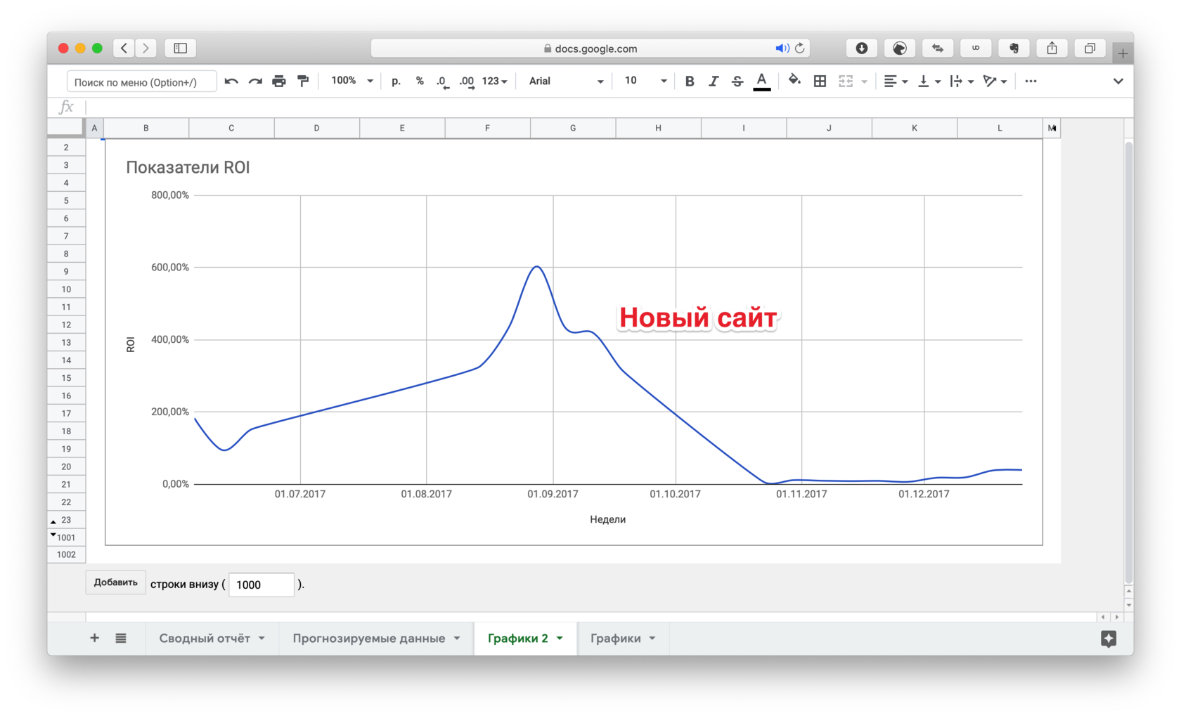 Время шло, мы управляли рекламой, ждали обновления сайта и отправляли отчёты с отрицательным ROI.