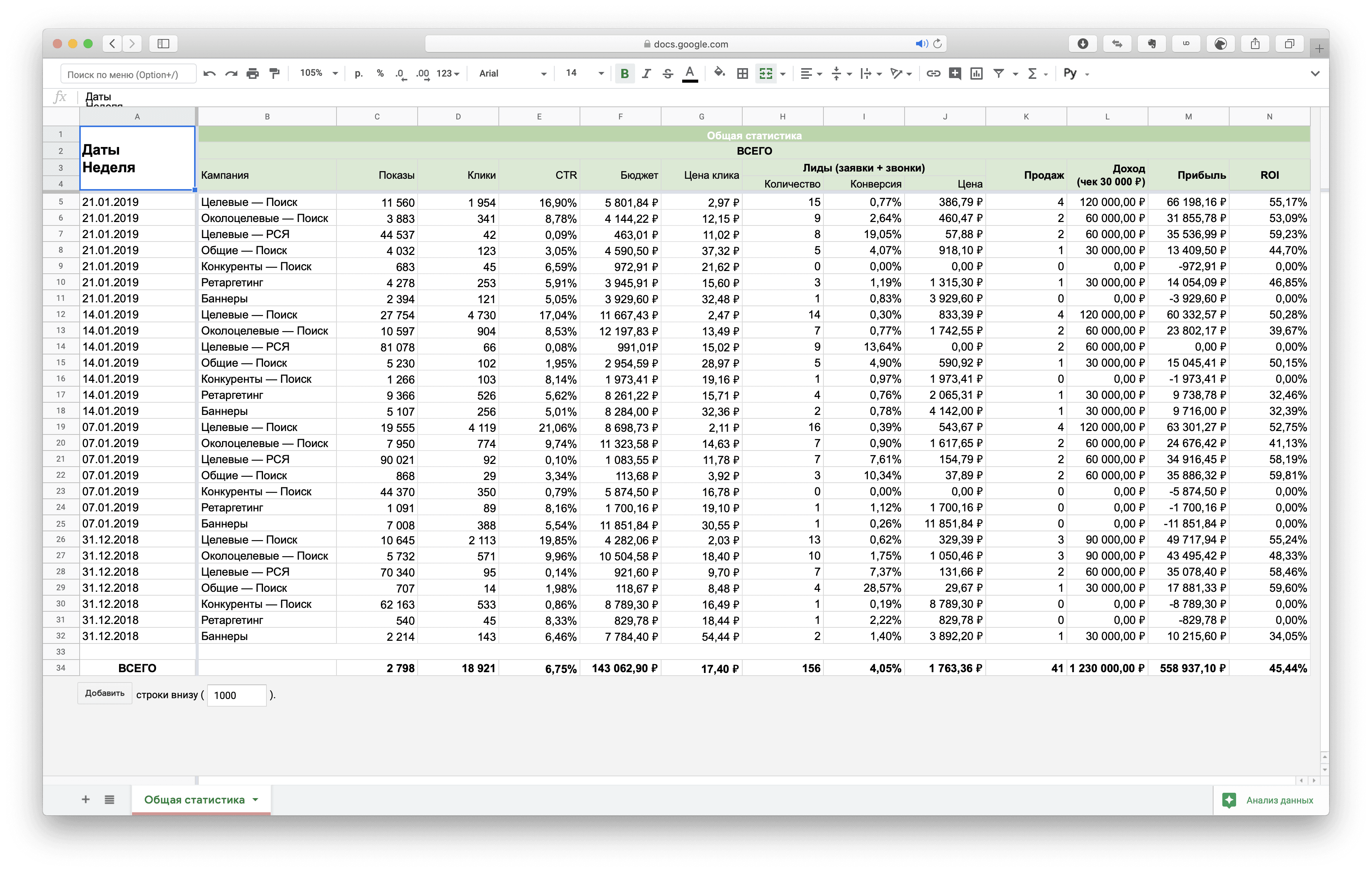Мы смогли убедить финансистов, что реклама работает эффективно — проблемы на стороне аналитики — получили зеленый свет и продолжили работать. Через пару недель к клиенту на фултайм вышел аналитик, а через некоторое время и Аналитикс заработал корректно.