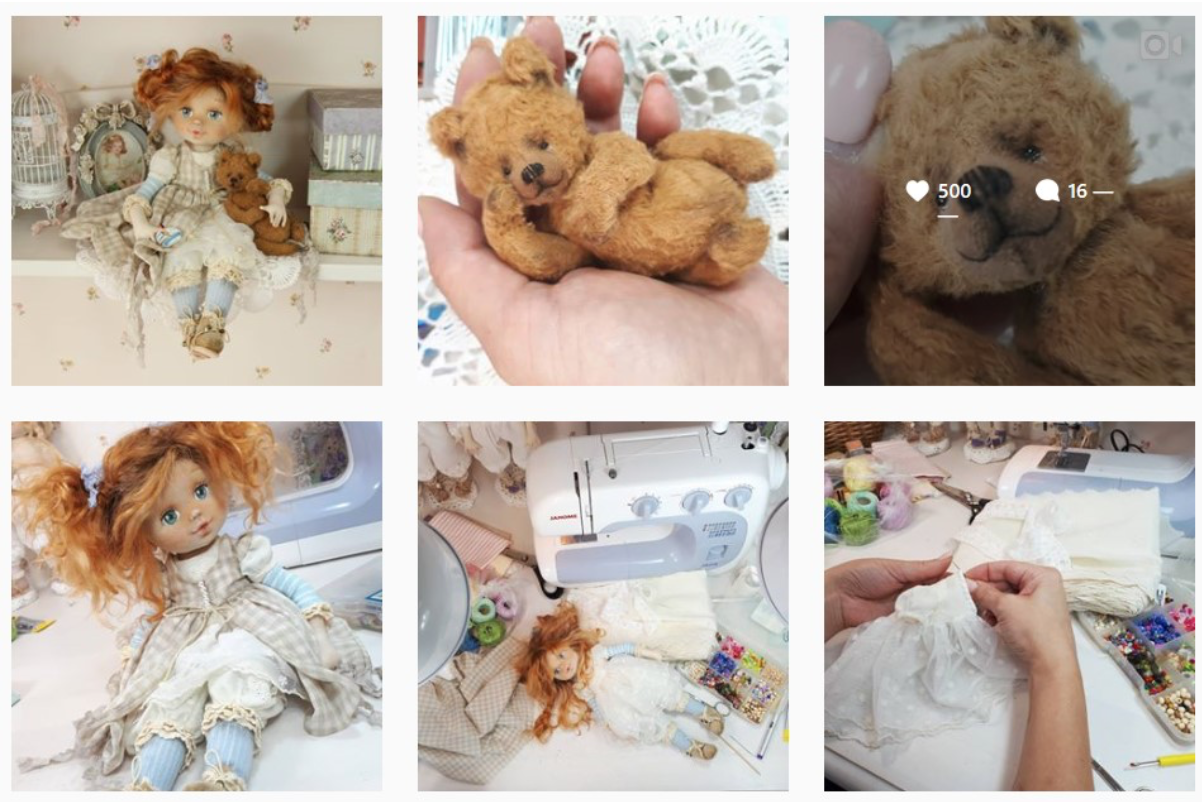 С помощью фото вы показываете не только результаты, но и процессы своей работы пошагово, а также бекстейдж. Если вы шьёте интерьерных медведей, то вашим подписчикам наверняка будет интересно, как пришиваются лапы-уши и хвосты, как выглядит готовый в деталях медведь, но ещё не сшитый. Про выбор ткани, ниток, иголок можно рассказывать и в коротких видео — это придаст жизни вашему аккаунту. В сториз можно снимать ситуативные сюжеты: медведь, упакованный в коробку, улетает из почтового отделения на другой конец света к покупателю; ассортимент тканей в магазине, от которого глаза разбегаются. В прямых эфирах можно рассказывать невидимые глазу покупателя процессы создания медведей, отвечать на вопросы читателей не только про медведей, но и, например, о том, как вы пришли в такой бизнес, чем жили и как жили раньше и т.д. А тексты — это святое! Несмотря на то,что многие уверены, что в Инстаграме смотрят только картинки, это жестокая неправда. Да, кто-то только смотрит картинки, механически пролистывая ленту, но для этой части аудитории у вас уже есть визуальный контент. А для тех, кто любит буквы, нужно писать. Писать регулярно, много и очень искренне — не только о том, из чего состоит процесс создания медведя, но и о том, почему не бывает двух одинаковых зверей — вдохновение, атмосфера в мастерской или дома, пора года, просто ваше настроение играет роль. Писать нужно о том, как медведь, купленный у вас, принес в чей-то дом радость и удачу; о том, как работа руками развивает тактильную чувствительность и как это отражается на вашем взаимодействии с людьми. Если ты искренне любишь то, чем ты занимаешься, темы никогда не иссякнут. А если наступит кризис, то всегда можно вдохновиться, полистав аккаунты коллег по бизнесу.
