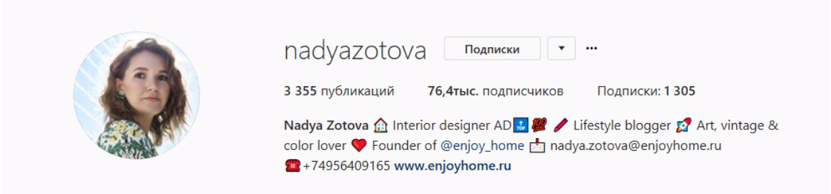 ‟ Мой аккаунт менялся. Сейчас удобен бизнес-аккаунт, своими возможностями: написать электронное письмо, позвонить. Я отслеживаю статистику и вижу, что из Instagram много людей звонят. У меня в описании профиля указаны все контакты для того, чтобы читателю было максимально удобно связаться по любому поводу: заказать проект, консультацию, предложить партнёрство. Важно, чтобы человек зашёл и сразу понял, кто, о чём пишет.