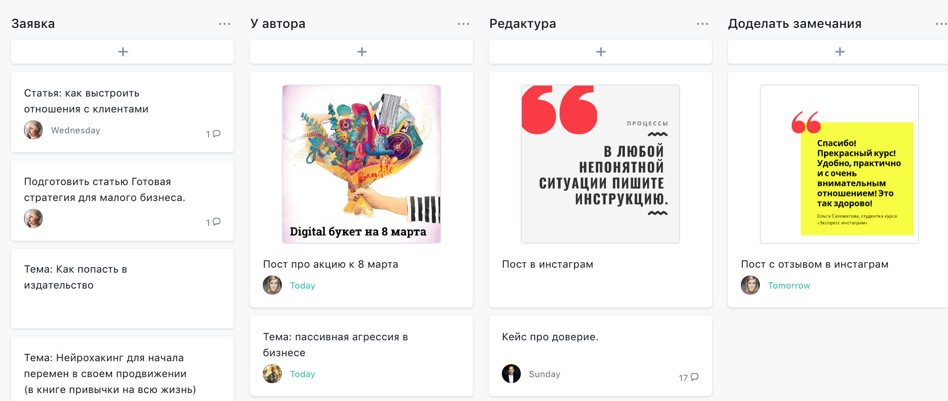 Мы работаем в асане и утверждаем весь контент там. Понятно, что есть привязка к редакционному плану. Но нам важно понимать, что и когда выйдет и в каком виде. А также сразу подключать к контенту клиента.