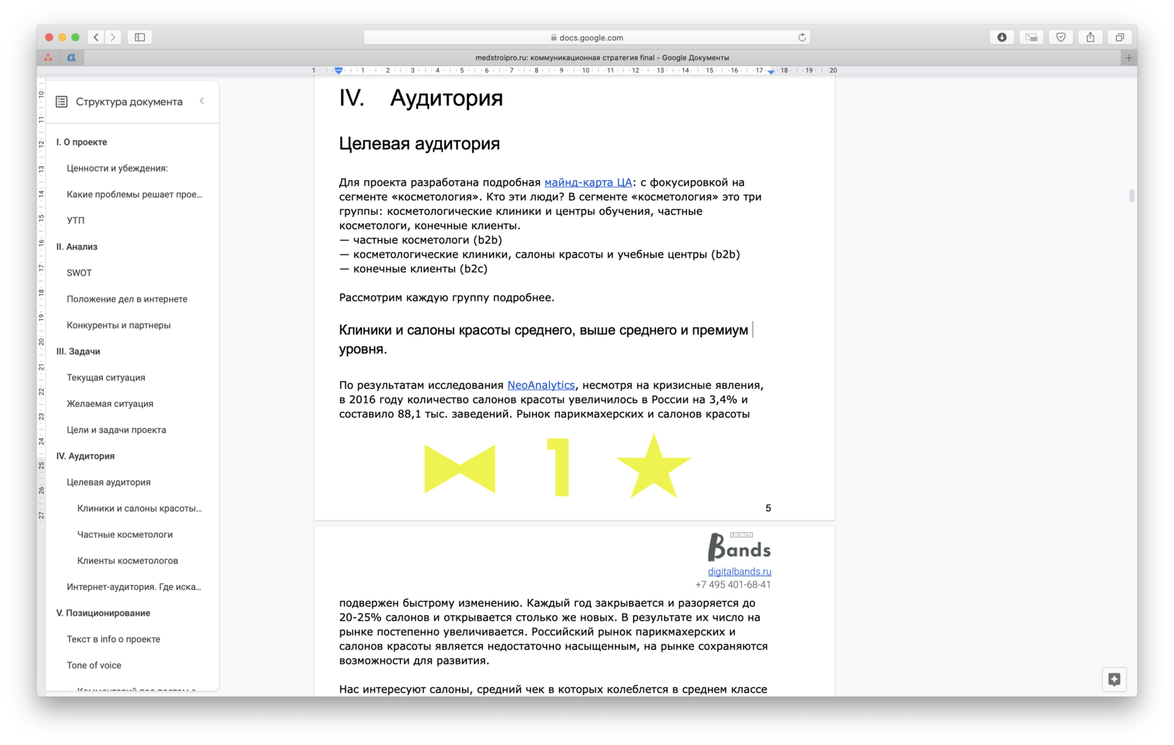 На промежуточных этапах мы обсуждаем целевые аудитории, посылы в работе с аудиториями, контент-план и пр.